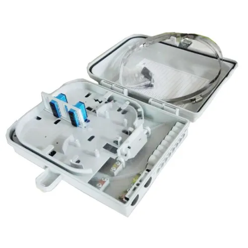 This 16core fiber optic distribution box has a pole-mounted installation structure and can be used with SC adapters/pigtails. The box is made of ABS/PC plastic material, with a choice of light gray or black appearance, strong structure, and suitable for a variety of fiber distribution and management scenarios.