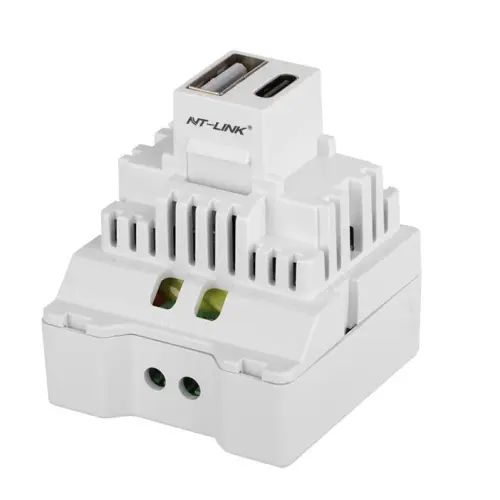 Embrace the future of charging with the NT-USB008B. This module features a USB-C port supporting the Power Delivery (PD) protocol, delivering intelligent fast charging at up to 20W. It offers flexible output profiles (5V/3A, 9V/2.22A, 12V/1.66A) to optimally charge a wide range of modern phones, tablets, and accessories that support PD. With universal AC input and EMC/LVD certifications, it combines advanced technology with safety. Its keystone design allows for sleek integration into any environment.